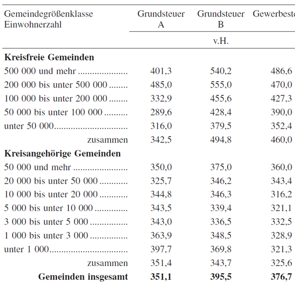 Das Bayerische Landesamt für Statistik teilt folgende endgültige Durchschnittshebesätze für das Kalenderjahr 2021 mit: